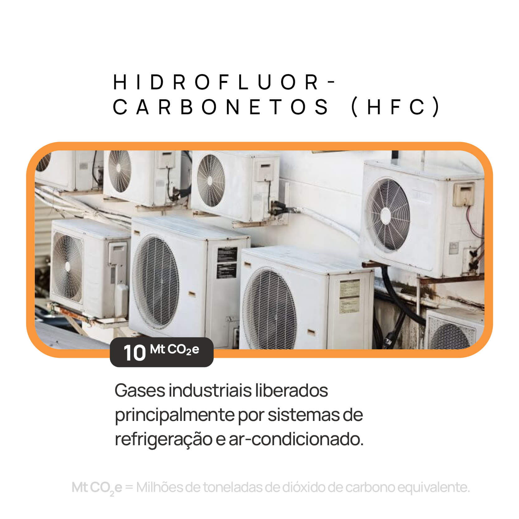 O SEEG compreende todos os gases de efeito estufa inventariados, sendo os principais: dióxido de carbono (CO2), metano (CH4), óxido nitroso (N2O) e os hidrofluorocarbonos (HFCs). Os dados são também apresentados em gás carbônico equivalente (CO2e), tanto na métrica GWP (potencial de aquecimento global) quanto GTP (potencial de mudança de temperatura global), segundo os fatores de conversão estabelecidos nos 2º, 4º, 5º e 6º relatórios do Painel Intergovernamental sobre Mudanças Climáticas (IPCC), conhecidos como AR2, AR4, AR5 e AR6.